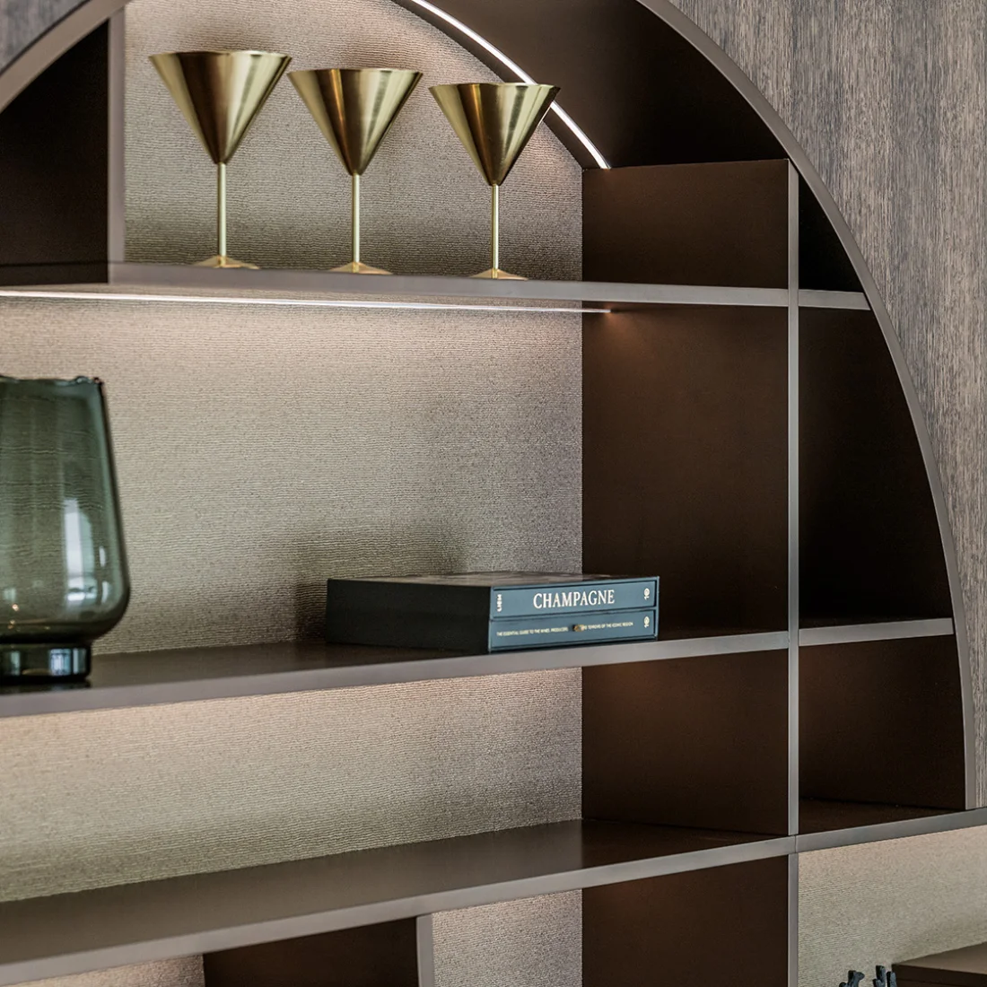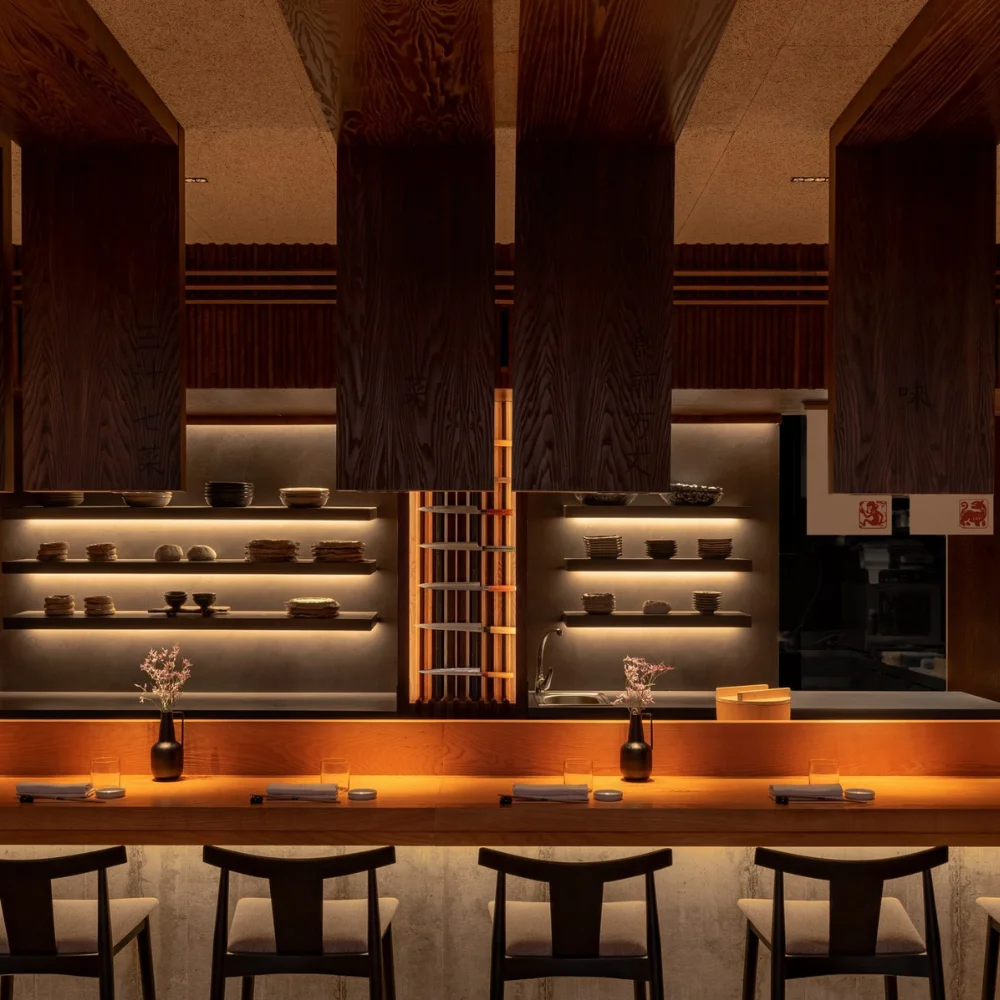 Convertimos la visión del estudio en una ejecución impecable combinando fabricación avanzada y ebanistería de alto nivel. Así garantizamos precisión milimétrica, integración de materiales y un acabado premium coherente con la narrativa del espacio.”