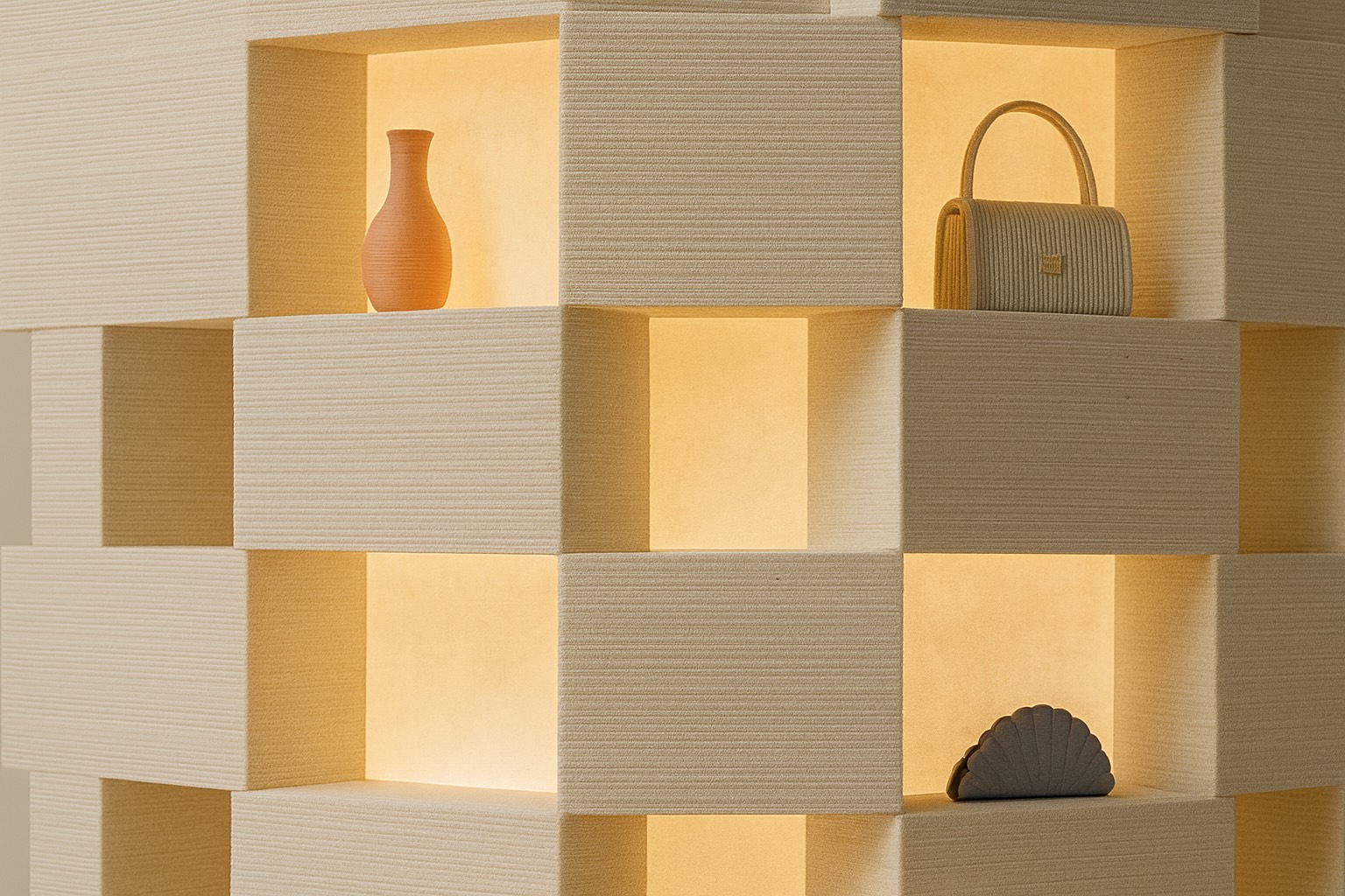 Esto abre la puerta a la fabricación de mobiliario urbano, stands de ferias, elementos arquitectónicos para showrooms y decoraciones de interior imposibles de lograr con técnicas tradicionales.