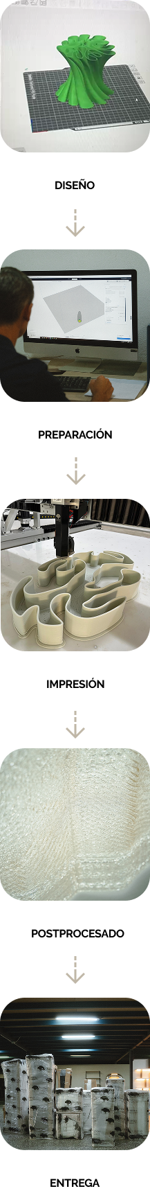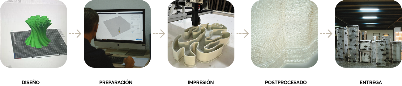 La impresora 3D de gran formato más grande de España, ahora a tu servicio. Fabricamos mobiliario exclusivo, esculturas decorativas, prototipos arquitectónicos y elementos de interiorismo únicos, todo en gran formato y con materiales sostenibles. QUIERO INNOVAR CON IMPRESIÓN 3D SOSTENIBLE