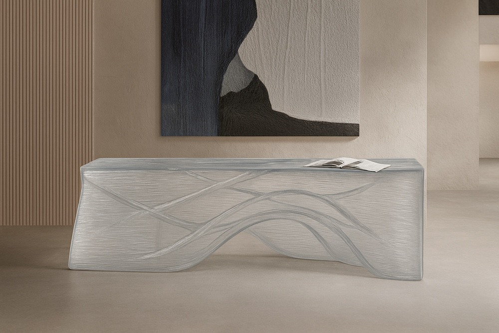 Banco orgánico impreso en 3D que combina ligereza, resistencia y un diseño fluido inspirado en las formas naturales del mar. Su estructura modular permite personalización total en dimensiones, acabados y materiales sostenibles.