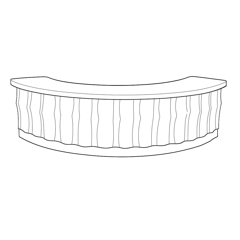 343 frente × 62 fondo × 115 altura cm (contorno semicircular).