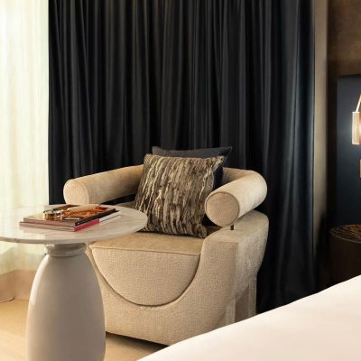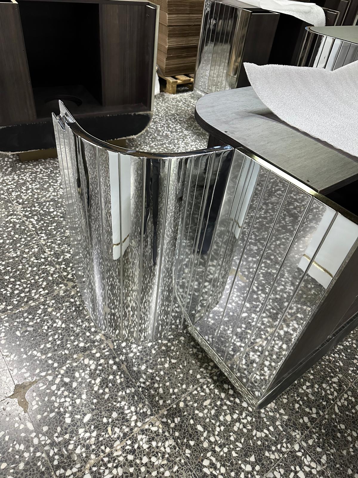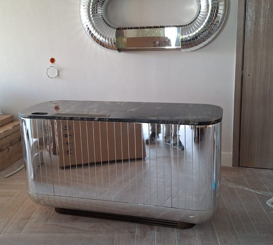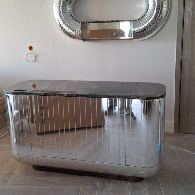 La intervención requería algo más que precisión: nos enfrentábamos a la integración de superficies cromadas en plata y cobre, con acabados impecables que debían dialogar con un interiorismo de gran sofisticación, respetando los estándares de durabilidad propios del uso intensivo del mobiliario hotelero. Cada pieza fue diseñada, fabricada y tratada con un enfoque casi artesanal, buscando no solo belleza, sino también carácter y resistencia.