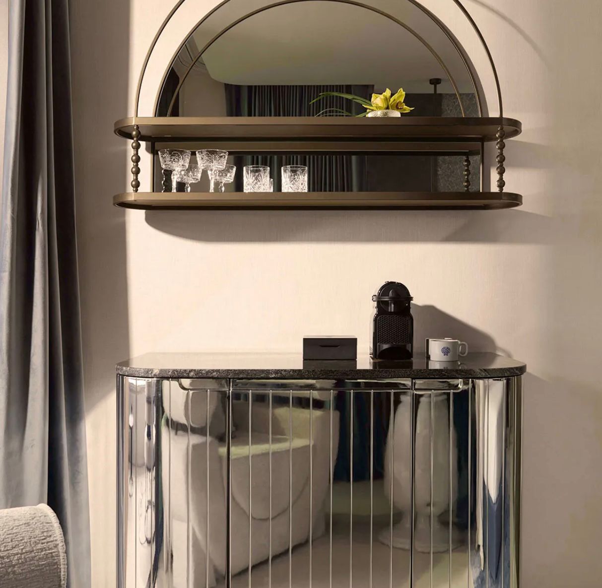 Una colección de minibares que no solo cumple su función práctica, sino que se convierte en una pieza protagonista dentro de cada habitación, elevando la experiencia del huésped y aportando identidad al conjunto.