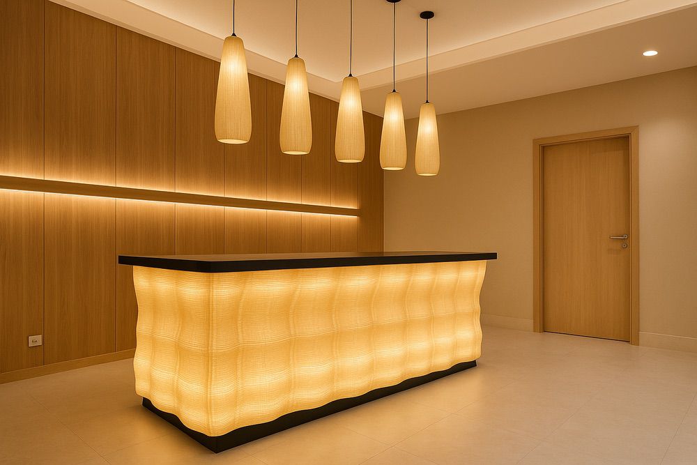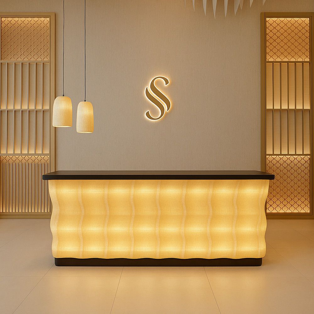 Mostrador impreso en 3D que combina diseño vanguardista y sostenibilidad. Su estructura ligera y resistente es totalmente personalizable, tanto en medidas como en acabados y materiales ecológicos.